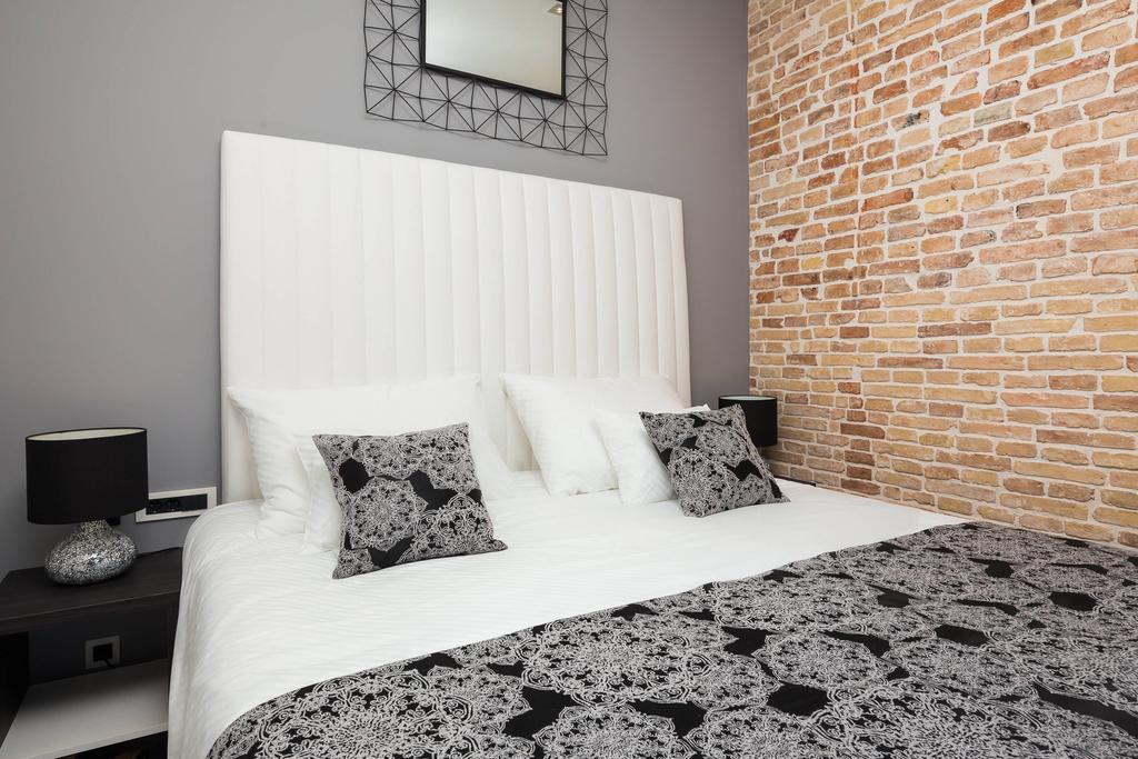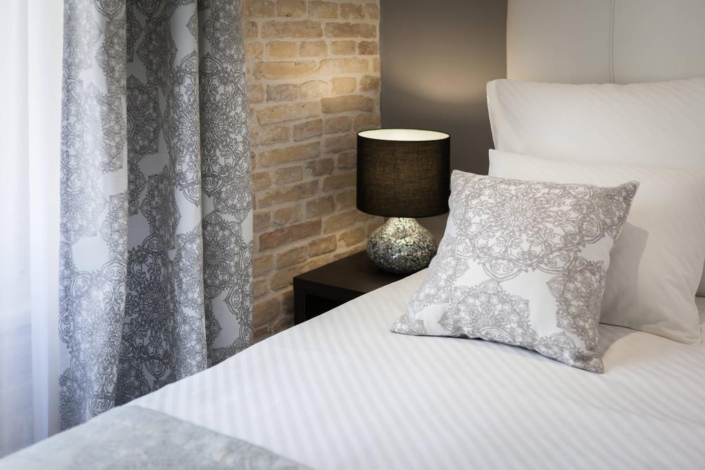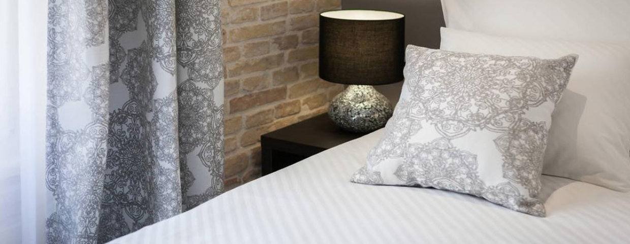 U ove iznimno elegantne sobe i apartmane naši Justin dekori se savršeno uklapaju. Tonski su usklađeni s detaljima poput lampi, ogledala i samog namještaja. Posteljina je 100% pamučna satenska s uzorkom kosih pruga.